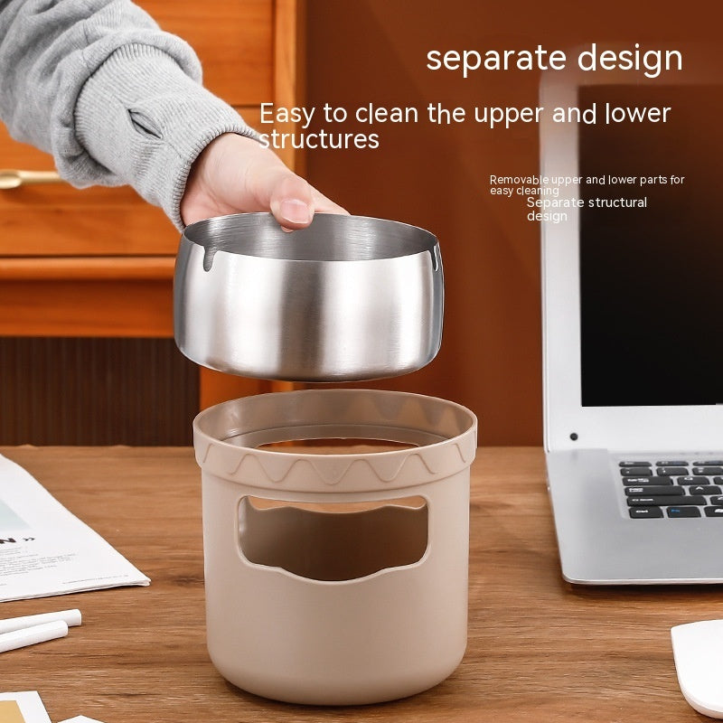 Product information: Color: Desktop trash bin windproof ashtray (classic black), desktop trash bin windproof ashtray (chinese red), desktop trash bin windproof ashtray (dark green), desktop trash bin windproof ashtray (sapphire blue), desktop trash bin windproof ashtray (dark coffee color), desktop trash bin windproof ashtray (athens white), desktop trash bin ashtray (sapphire blue), desktop trash bin ashtray (dark coffee color), desktop trash bin ashtray (athens white) Material: Stainless steel +PP material Additional features: Storage