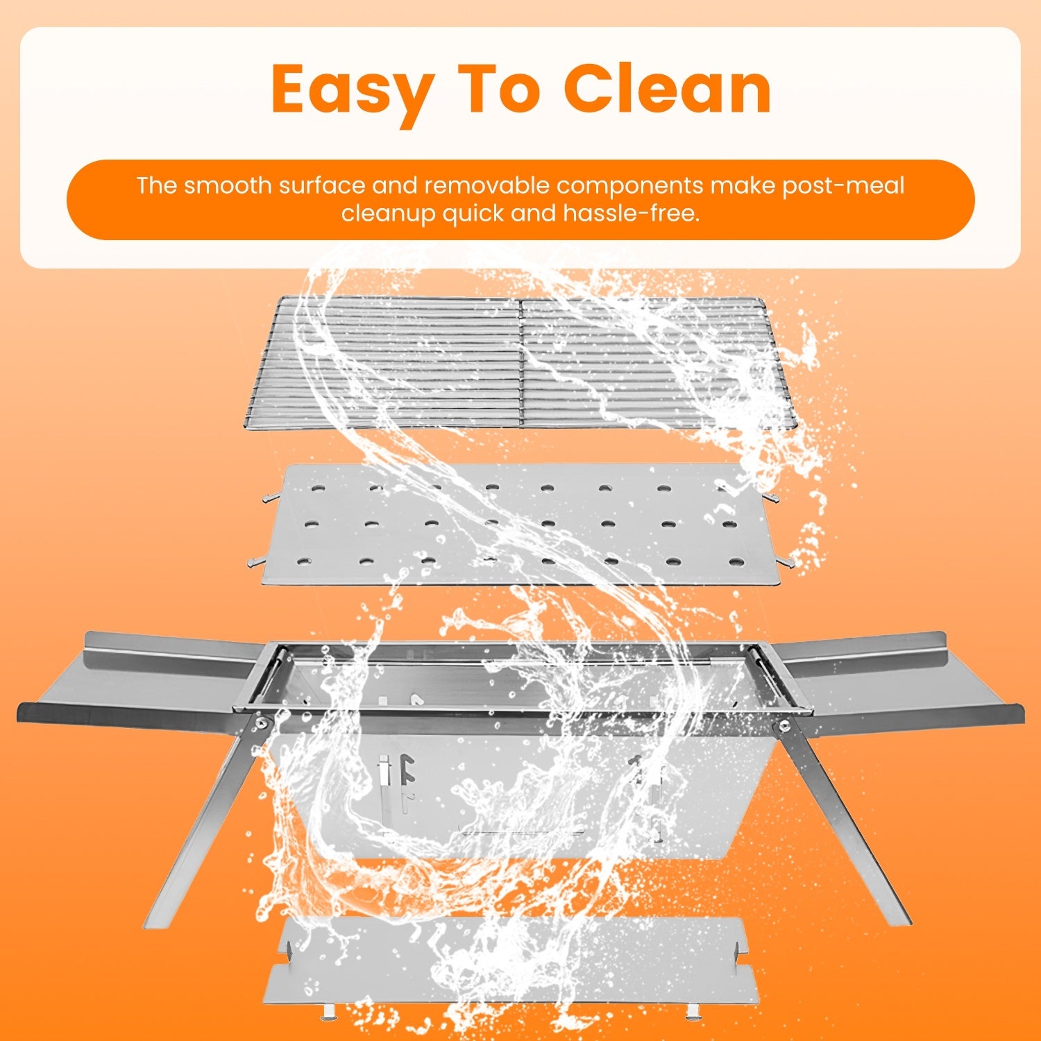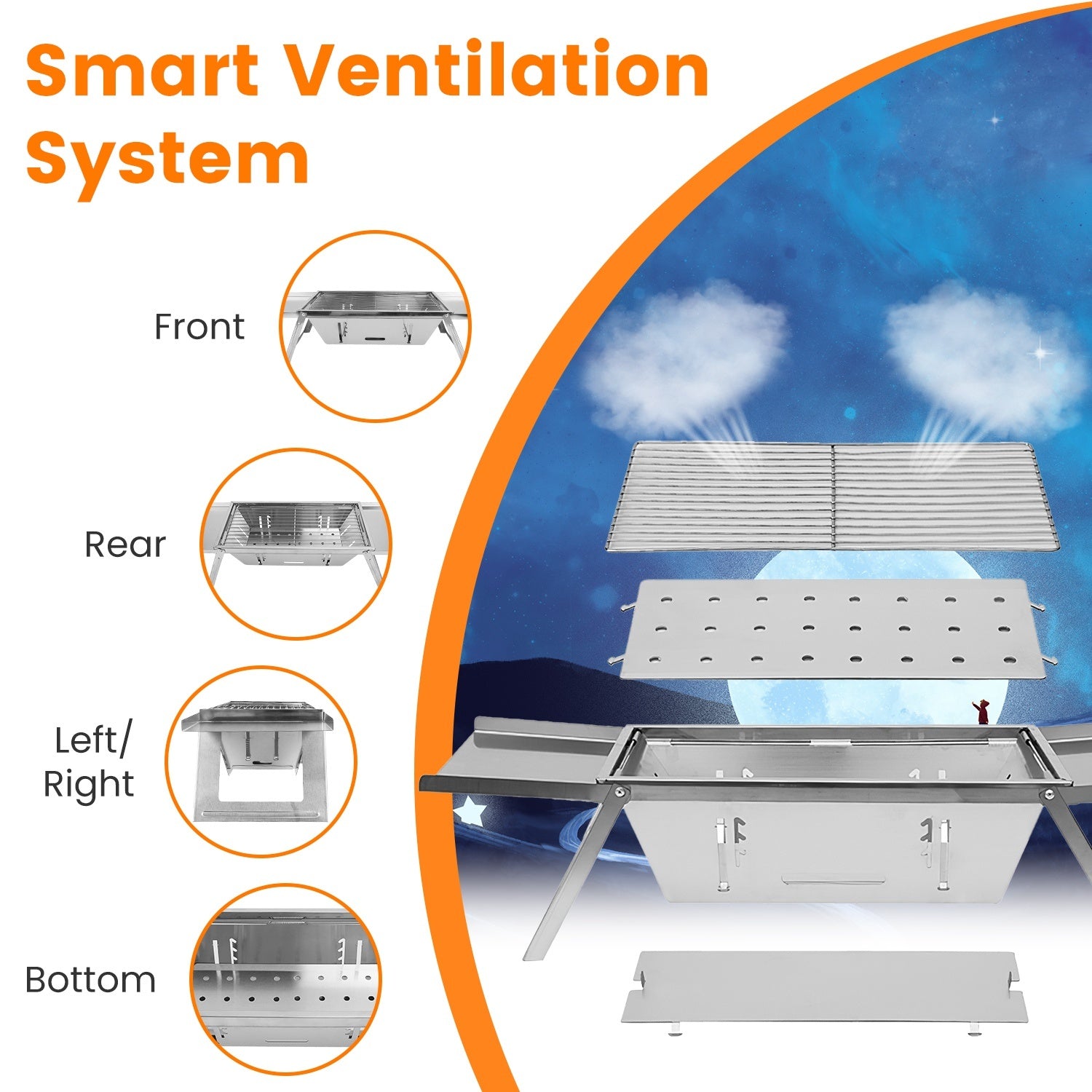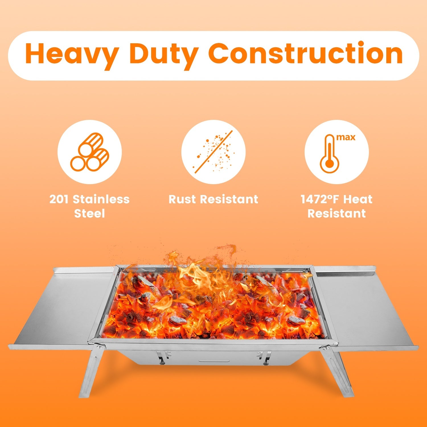 *Super Heavy Duty & Heat Resistant Grill*: Constructed from heavy duty 201 stainless steel, this foldaway charcoal grill grill stands up to 1472°F (800°C) , rust-resistant and built for long-lasting use.