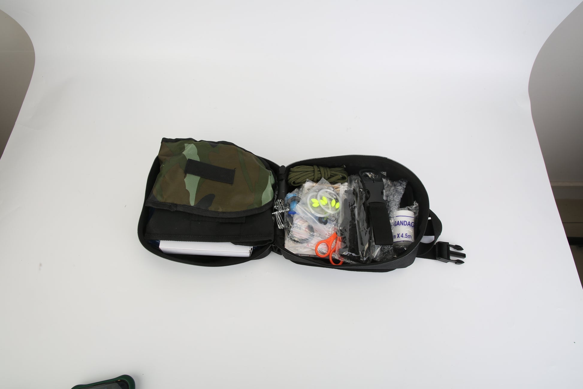 *121Pcs Complete Survival Kit*:This 121Pcs emergency survival kit contains all the items you need for outdoor activities,such as multifunctional axe,shovel,tactical pen,flashlight,raincoat,thermal blanket,first aid kits and so on. Perfect for taking care of any medical or emergency needs during outdoor wilderness adventures.